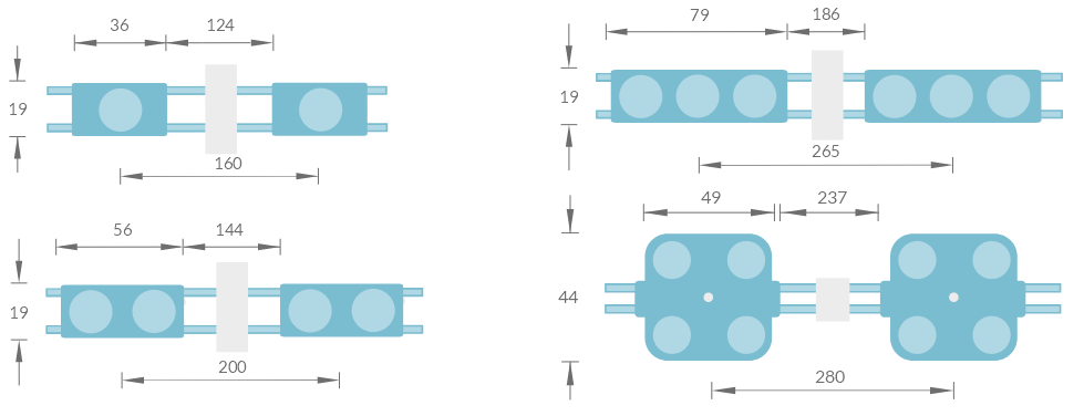 Rozstaw modułów | 160 mm | 200 mm | 265 mm | 280 mm |