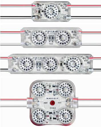 Maksymalna liczba modułów podłączonych w jednym łańcuchu to 20 szt! W przypadku stosowania większej liczby modułów należy za`stosować równoległe zasilanie łańcuchów.